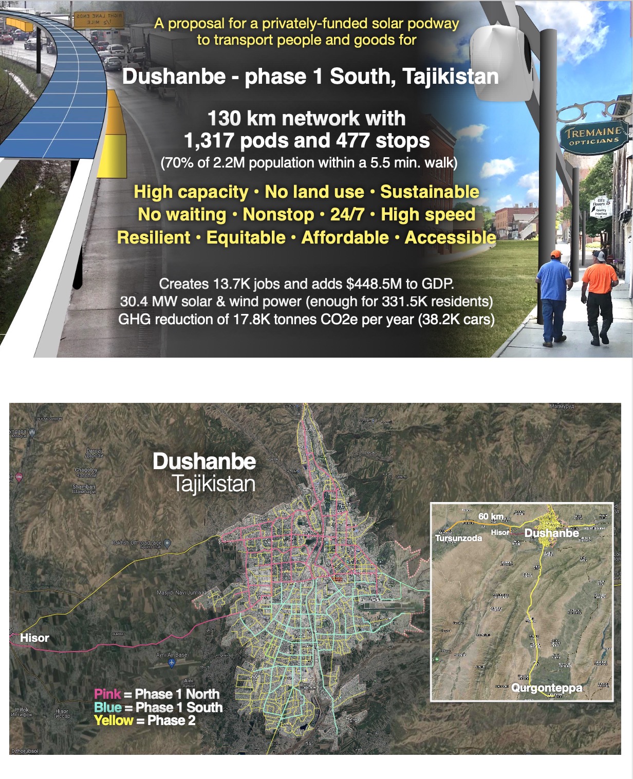 Podways combine the convenience of cars, the capacity of trains, the efficiency of bicycles, and the speed and safety of flying — effectively replacing cars, buses, trains, trucks and short flights.